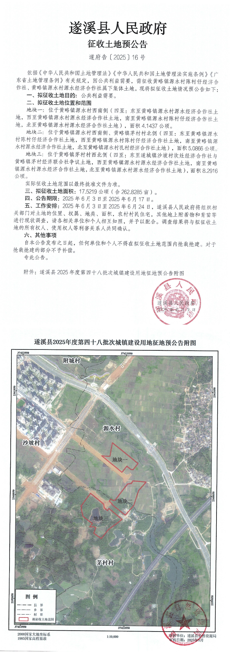 遂溪县人民政府 征收土地预公告 遂府告〔2025〕16号