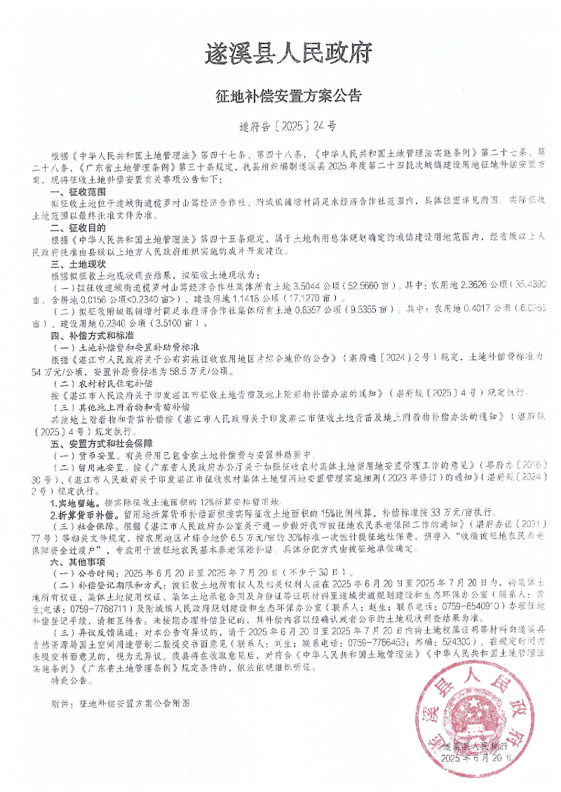 遂溪县人民政府 征地补偿安置方案公告 遂府告〔2025〕24号