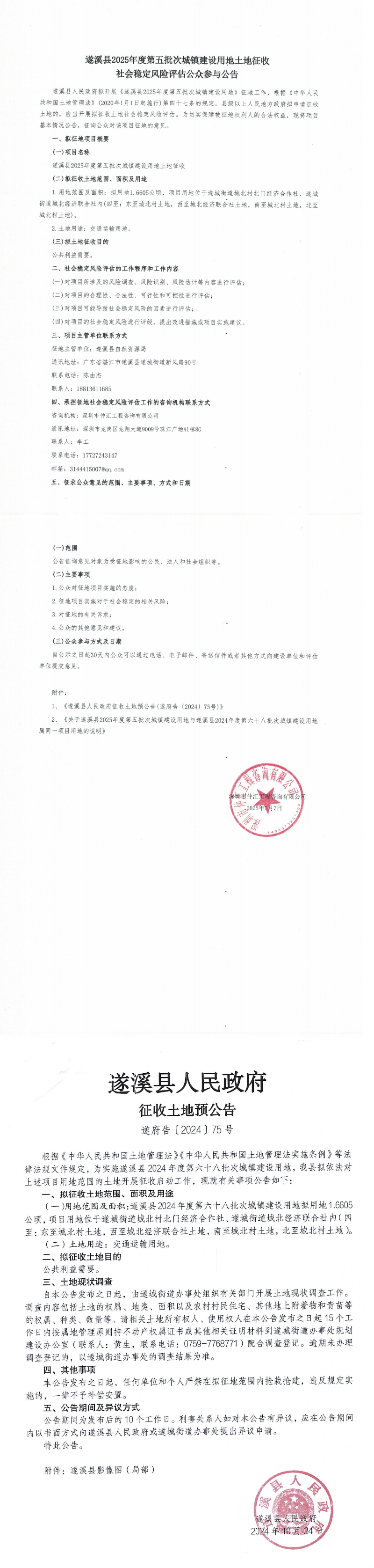 遂溪县2025年度第五批次城镇建设用地土地征收社会稳定风险评估公众参与公告