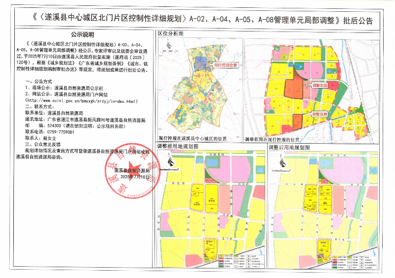《〈遂溪县中心城区北门片区控制性详细规划〉A-02、A-04、A-05、A-08管理单元局部调整》批后公告
