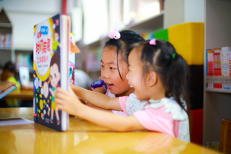 10月3日,小朋友在贵州省黔西市锦绣街道文化站阅读。