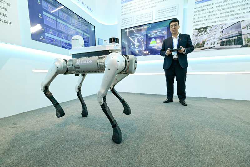 11月15日,在第二十五届高交会上,工作人员展示用于巡检的四足机器人。