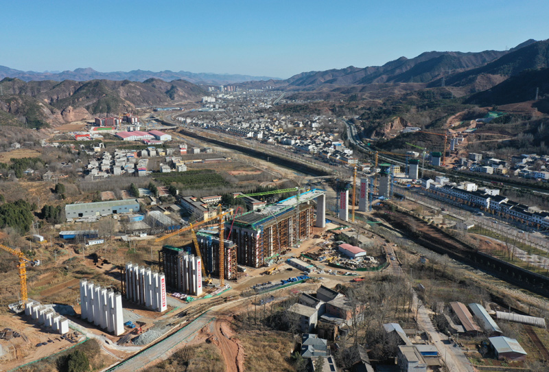 这是由中铁二十局集团承建的西十高铁陕西商洛段南秦河特大桥施工现场(2023年12月4日摄,无人机照片)。新华社记者 张博文 摄