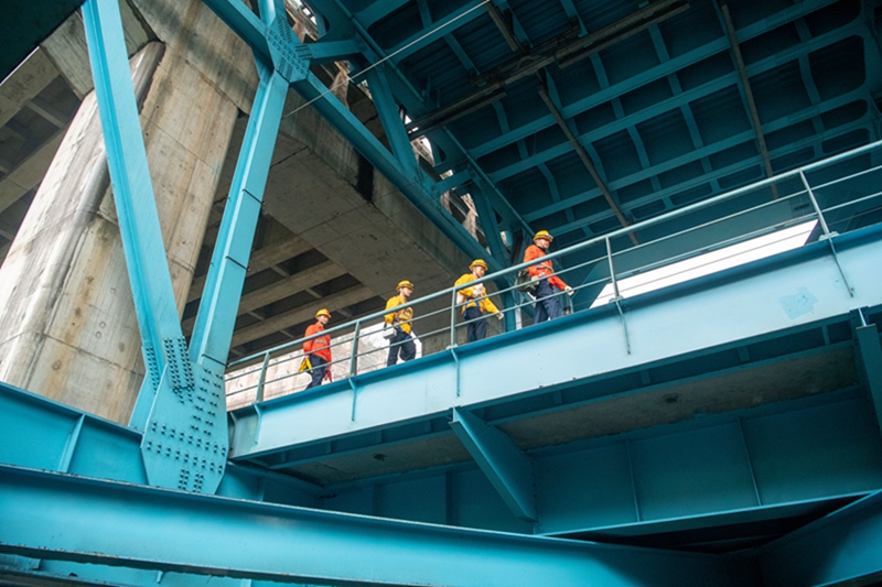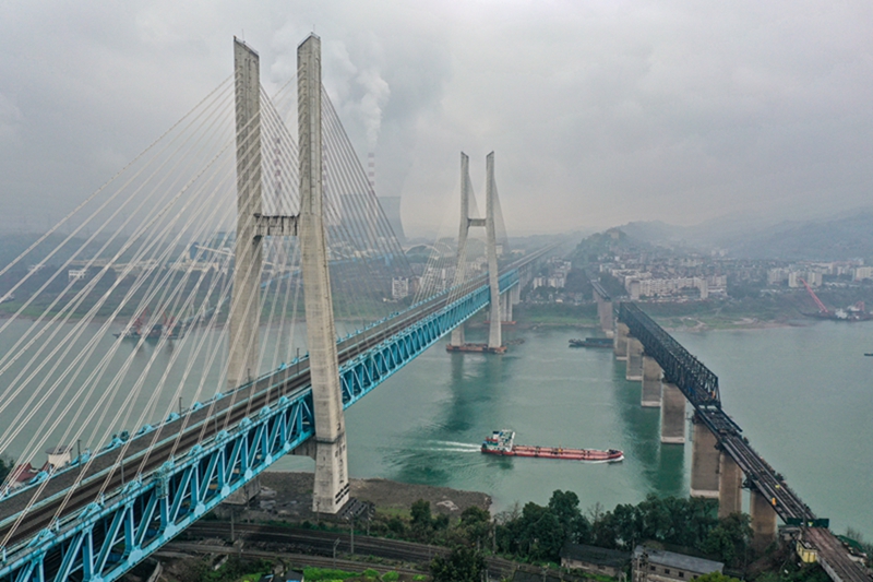 渝贵铁路线上的新白沙沱长江特大桥是世界首座双层铁路钢桁梁斜拉桥。重庆工务段重庆桥路车间担负着这座桥梁的检查任务,桥隧工人们日常需要在桥面、桥梁下部和主塔等位置开展设备检查作业。其中的桥梁主塔检查,是整个检查工作中难度最大、风险最高的项目,塔顶距桥面147米,工人需要沿螺旋式检查梯垂直攀爬约1000步,耗时近2小时登至塔顶开展检查作业。春运期间,工人们对大桥进行详细检查,保证大桥各项指标状态正常,为铁路平安运行贡献力量。