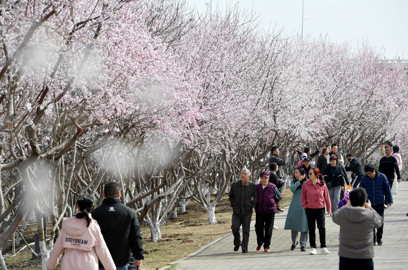 3月17日,人们在河北省石家庄市滹沱河生态区游玩。