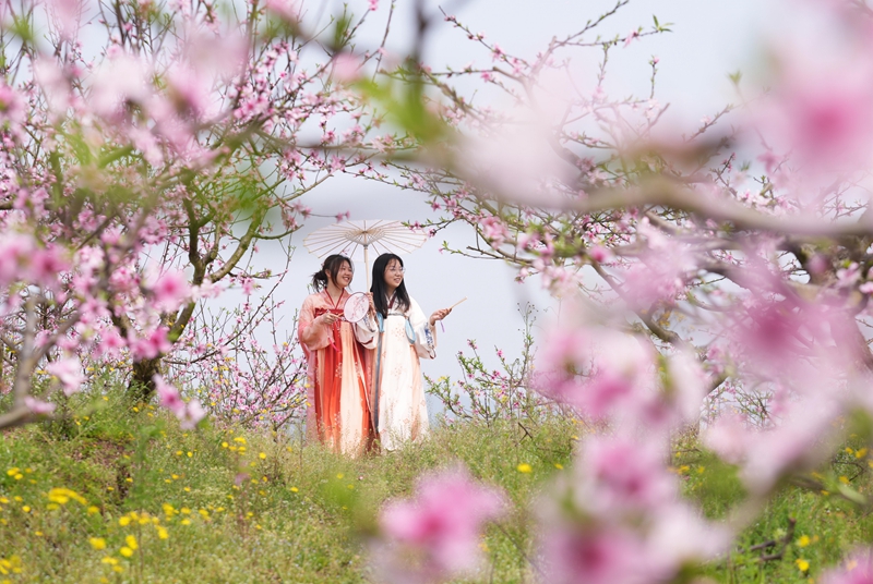 3月17日,游客在重庆市北碚区澄江镇民权村天歌园水蜜桃采摘基地游玩。