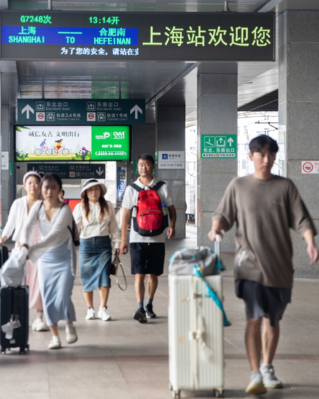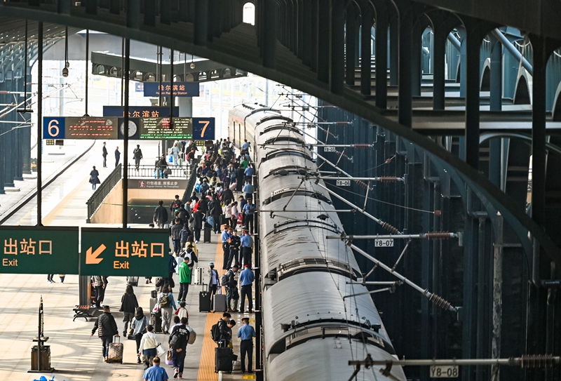 9月29日,旅客在江苏扬州火车站站台乘车出行。
