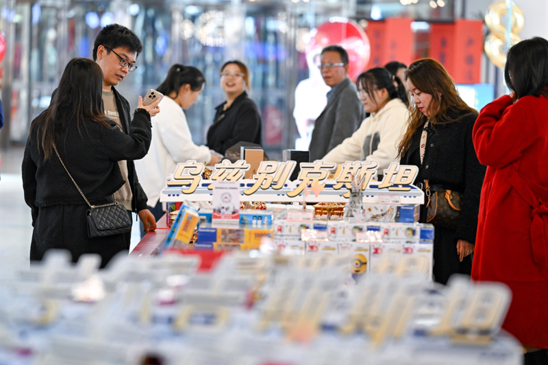 10月26日,消费者在中亚特色商品展示展销中心现场选购商品。