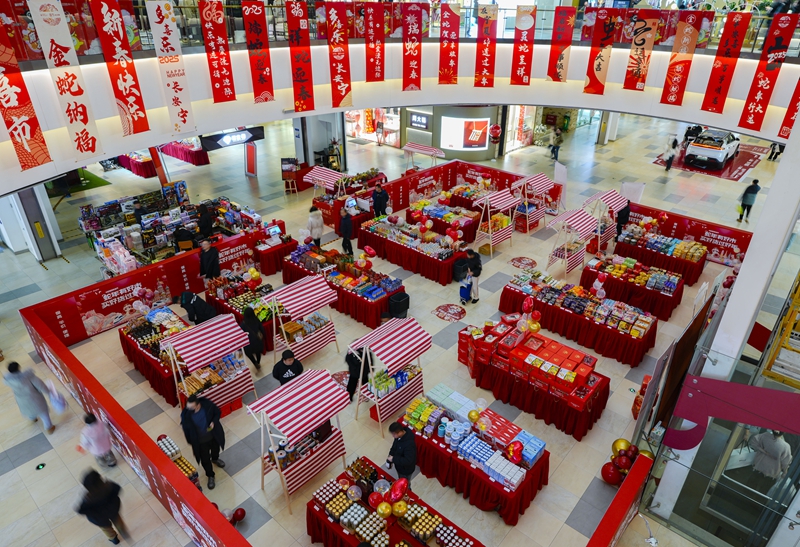 1月25日,市民在宁夏银川一家商场内选购年货。