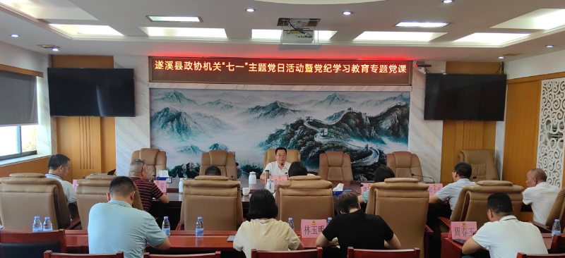 7月1日上午,遂溪县政协机关开展“七一”主题党日活动,邀请县政协党组书记、主席潘汝权为机关党员干部讲授党纪学习教育专题党课,集中观看专题片《百年“纪”忆—中国共产党纪律建设百年回眸》。