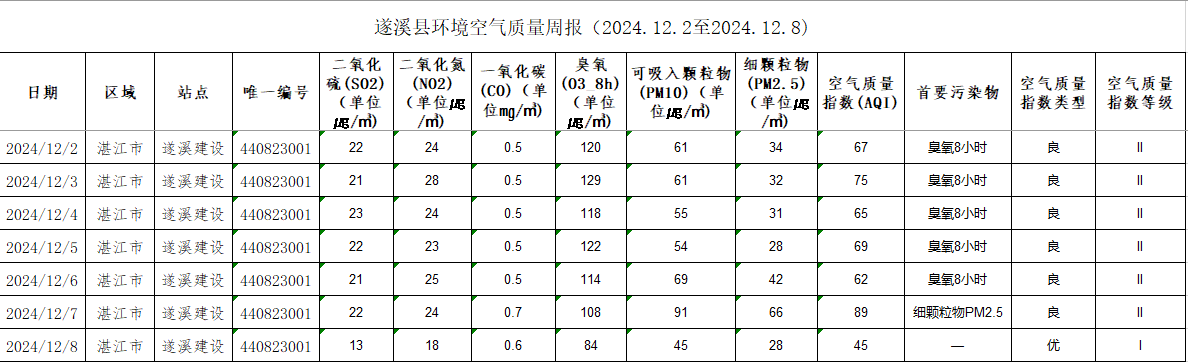 遂溪县环境空气质量周报(2024.12.02至2024.12.08)