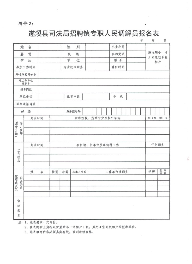 遂溪县司法局招聘镇专职人民调解员公告 | | 作者: | 来源:本网 | 时间:2018-09-17 00:00:00 点击数:- 附件1:遂溪县司法局招聘镇专职人民调解员岗位表 附件2:遂溪县司法局招聘镇专职人民调解员报名表 【打印正文】