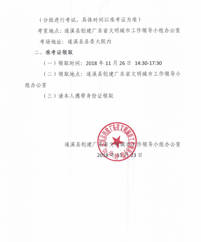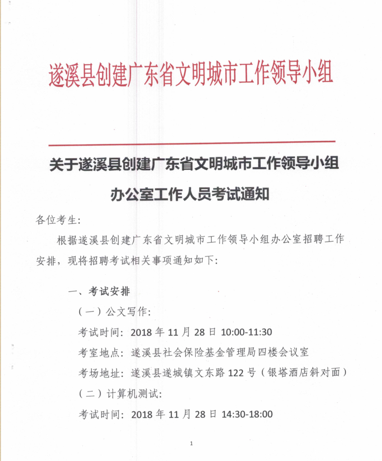 关于遂溪县创建广东省文明城市工作领导小组办公室工作人员考试通知