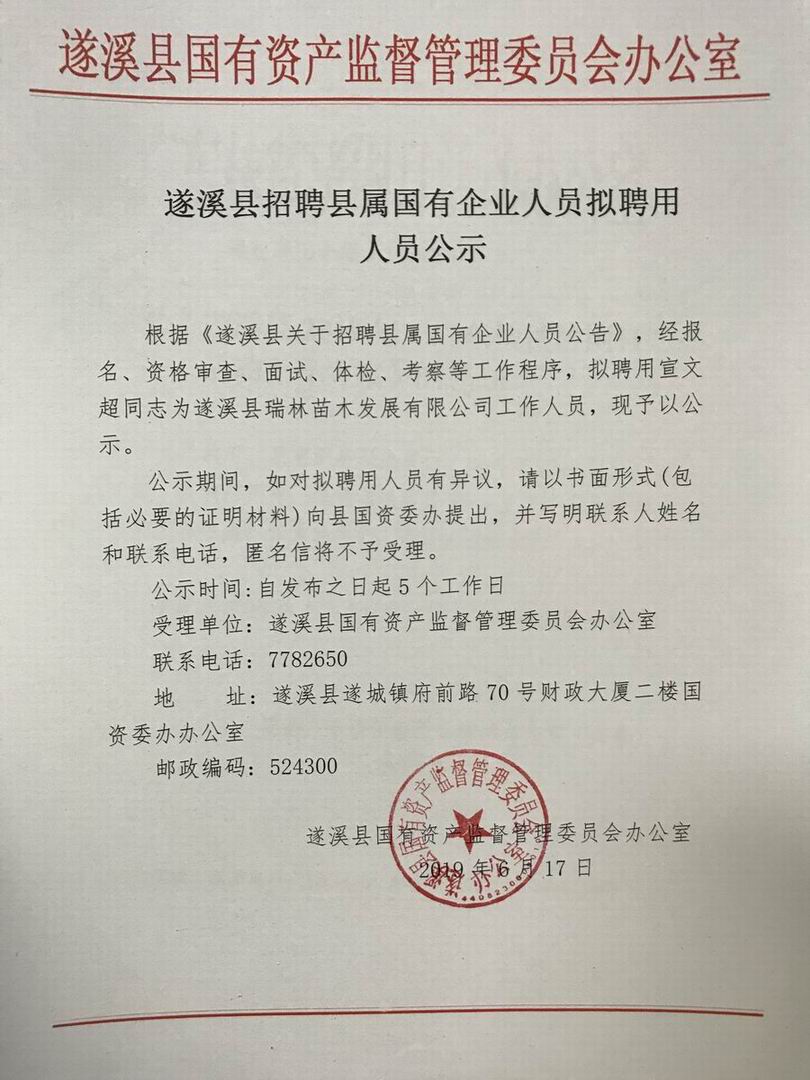 遂溪县招聘县属国有企业人员拟聘人员公示