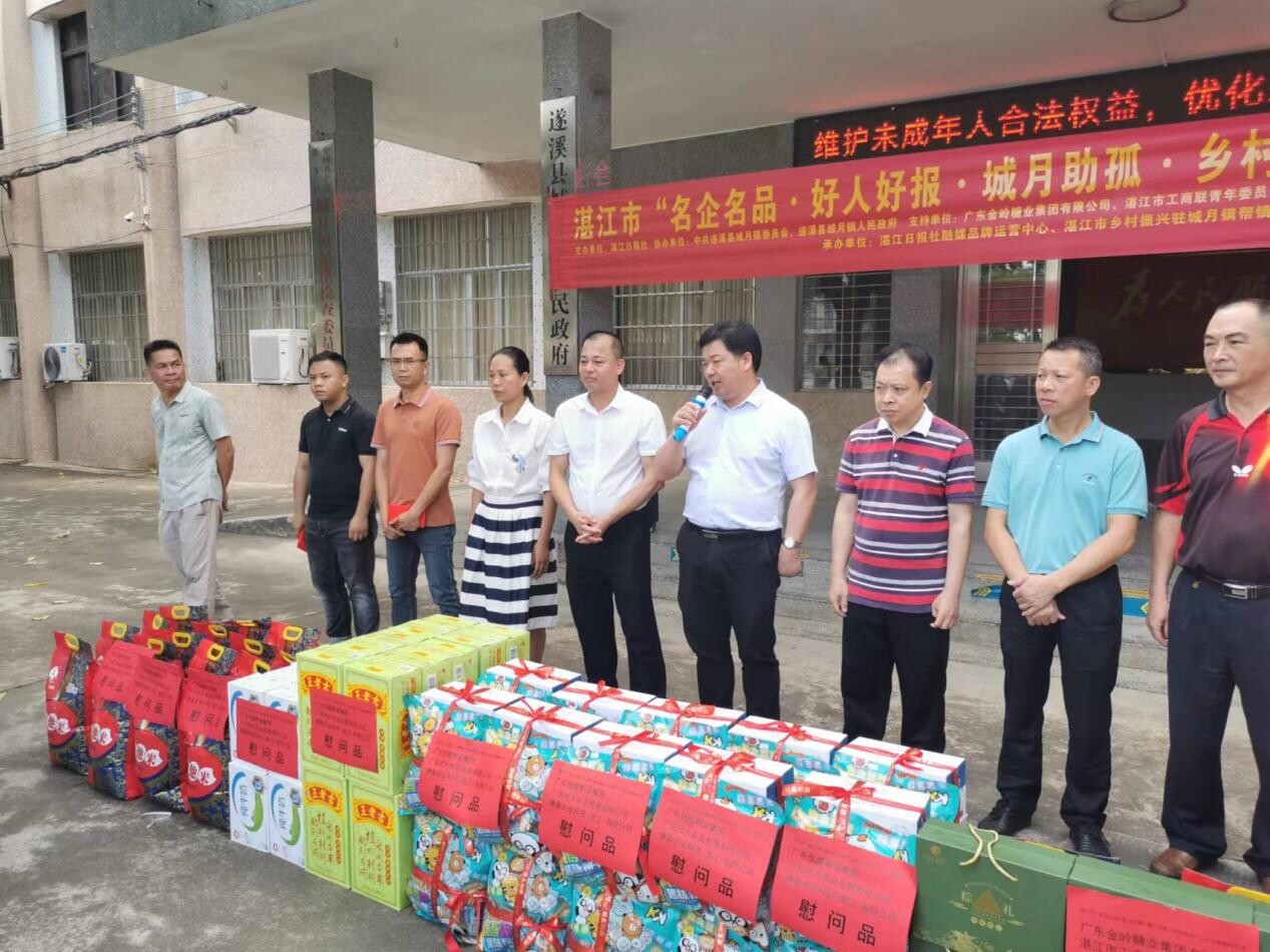 2023年5月27日上午,由湛江日报社主办、城月镇委镇政府协办的湛江市“名企名品•好人好报•城月助孤•乡村振兴”三年公益捐助行动之——第五次慰问活动在镇政府大院举行。湛江日报社党委书记、社长阮小远率社会热心人士对我镇20名困境儿童进行了亲切慰问,为每名困境儿童派发慰问金、慰问品。在“六一”儿童节即将到来之际,孩子们感受到来自社会的无限温暖与亲切关怀。(特别感谢广东金岭糖业集团有限公司、湛江市工商联青年企业家委员会、广东优盛教育集团、广东壮大农业发展有限公司、佛雷农业科技(湛江)有限公司、湛江市金华金钩饼业有限公司对本次活动的大力支持。)