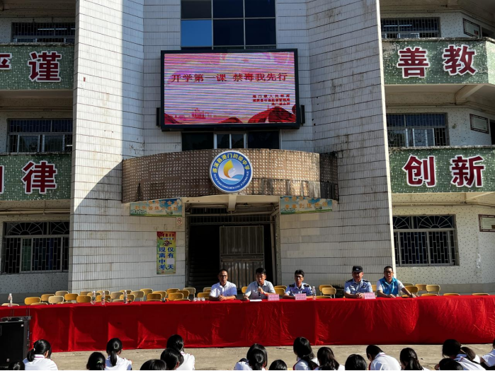 又是一年金秋开学季,为进一步加强校园禁毒宣传力度,提高中小学生的识毒能力和禁毒意识,9月1日,港门镇禁毒办联合县市场监督局、港门司法所、派出所、港门共青团到港门中学开展“开学第一课,禁毒我先行”禁毒暨校园安全宣传活动。