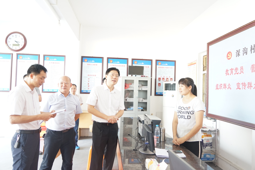 陈政一行实地察看了黄略镇颜四村、深沟村委会、新深沟村、建材工业园等,听取相关责任人汇报人居环境整治、精准扶贫、建材工业园建设等情况。