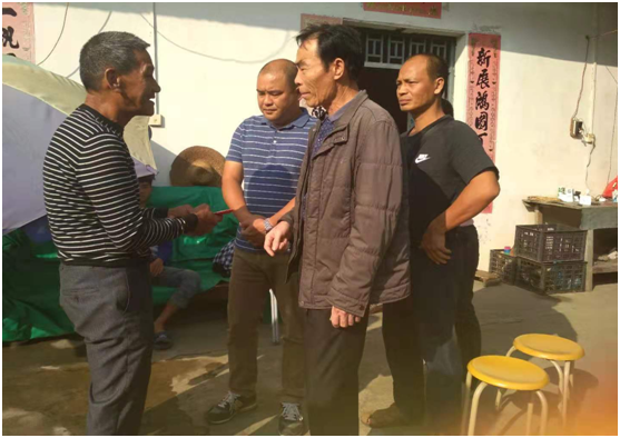 镇长陈华夺以村民身份到塘口村委会开展体验式调研,通过与村民的亲切交谈,了解当前塘口村人居环境整治的情况。