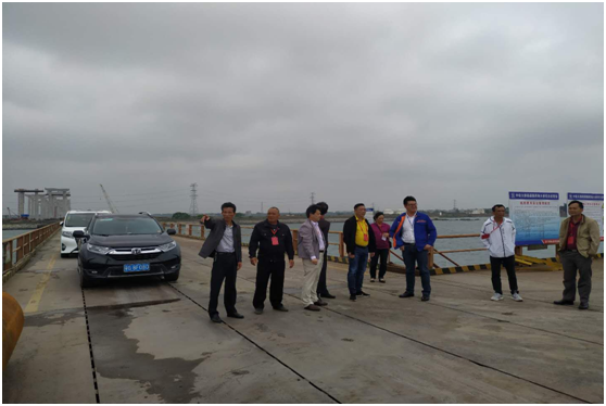 代表们实地视察了调顺跨海大桥施工现场,认真听取了调顺跨海大桥项目部党工委副书记郭琦琳和征拆工作组的相关情况介绍,详细了解当前征拆工作进度、施工进展、存在的困难以及该项目建成后的效果。黄略段红线用地465亩,现已交地385亩,完成82.80%。调顺跨海大桥项目路线全长9.360km,全线桥涵工程5km,路基4km,截止2019年3月底,已完成施工进度47.02%。