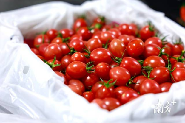 1月3日,广东(遂溪)界炮圣女果“百城万店”行动启动会上,现场签约销售量高达1800万斤,预计占全年总产量的五分之一,北纬21°“小糖弹”一炮而红。今天,新一季的界炮圣女果,从粤西小镇走向粤港澳大湾区,踏入大型商超,走进湾区大众的果盘子里。