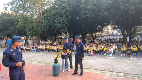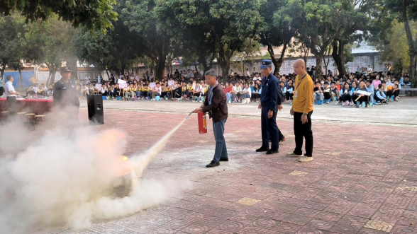 活动现场,消防员向全体师生讲解各类消防器材让他们更加全面地了解消防器材的性能和使用方法、火灾预防常识以及发生火灾时的注意事项等内容。消防员们在现场进行了一次演练,带领他们身临其境地感受火场救援,讲解的消防知识内容贴近生活、贴近学生、贴近实际。