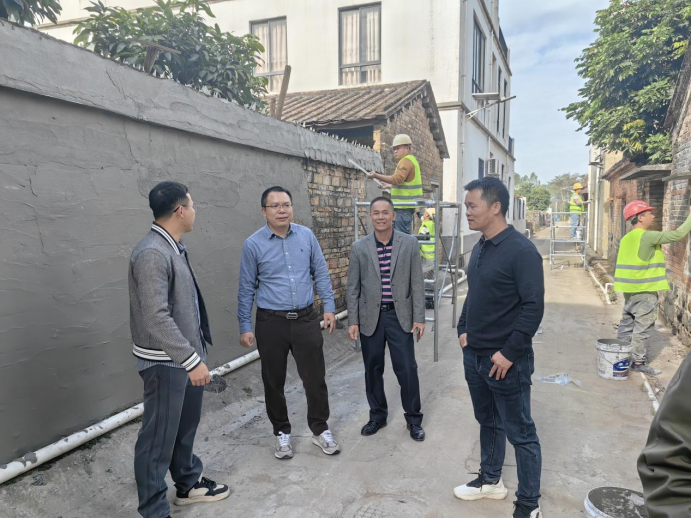 图为圩镇“赤膊房”美化项目施工现场