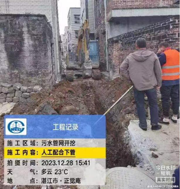 图为镇区污水管网整治建设项目施工现场