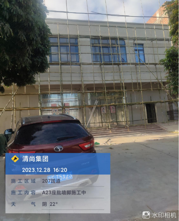 (八)清尚集团对国道G207路段(那杰村至岭北驿站)外立面改造项目开始进场施工。今日派出施工人员10人,完成绞手架搭建2栋600㎡,外立面围墙批灰300㎡。