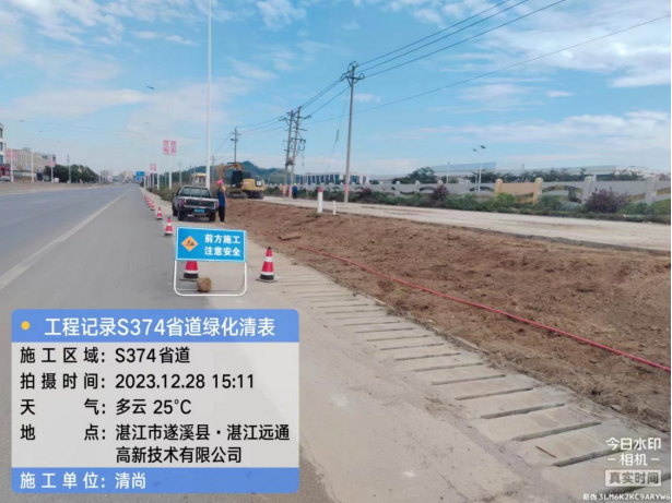 (十)清尚集团对S374路段(岭北驿站至北部湾北一门段)两旁绿化项目进行施工。今日派出施工人员4人。累计完成道路两旁清表300米。