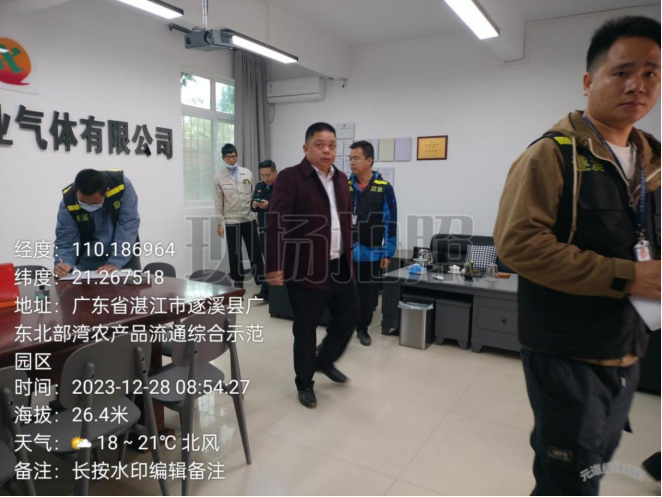 2023年12月28日上午,岭北镇党委书记谢伟清、常务副镇长杨一军组织应急办、执法办、岭北派出所、岭北市场监督所、岭北供电所等相关部门到广东金岭糖业集团公司、湛江喜强工业气体公司等重点企业开展岁末年初安全生产暨消防联合大检查,督促各企业认真落实安全生产主体责任,认真开展自查自纠工作。
