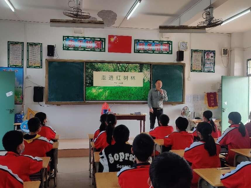 宣讲活动中,谭泉玉委员从红树林的定义,湛江红树林的分布、分布、分类及红树林精神等方面,详细向学生们讲解了红树林的生态科普知识,传递了保护红树林、保护湿地生态系统的理念。随后学生们观看了湛江红树林的宣传视频,倾听了湛江红树林的宣传歌曲。