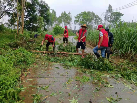 湛川村党员干部、党员志愿者清理路面障碍物