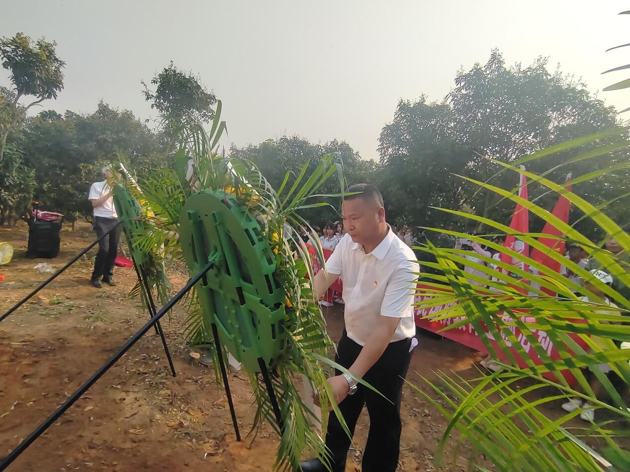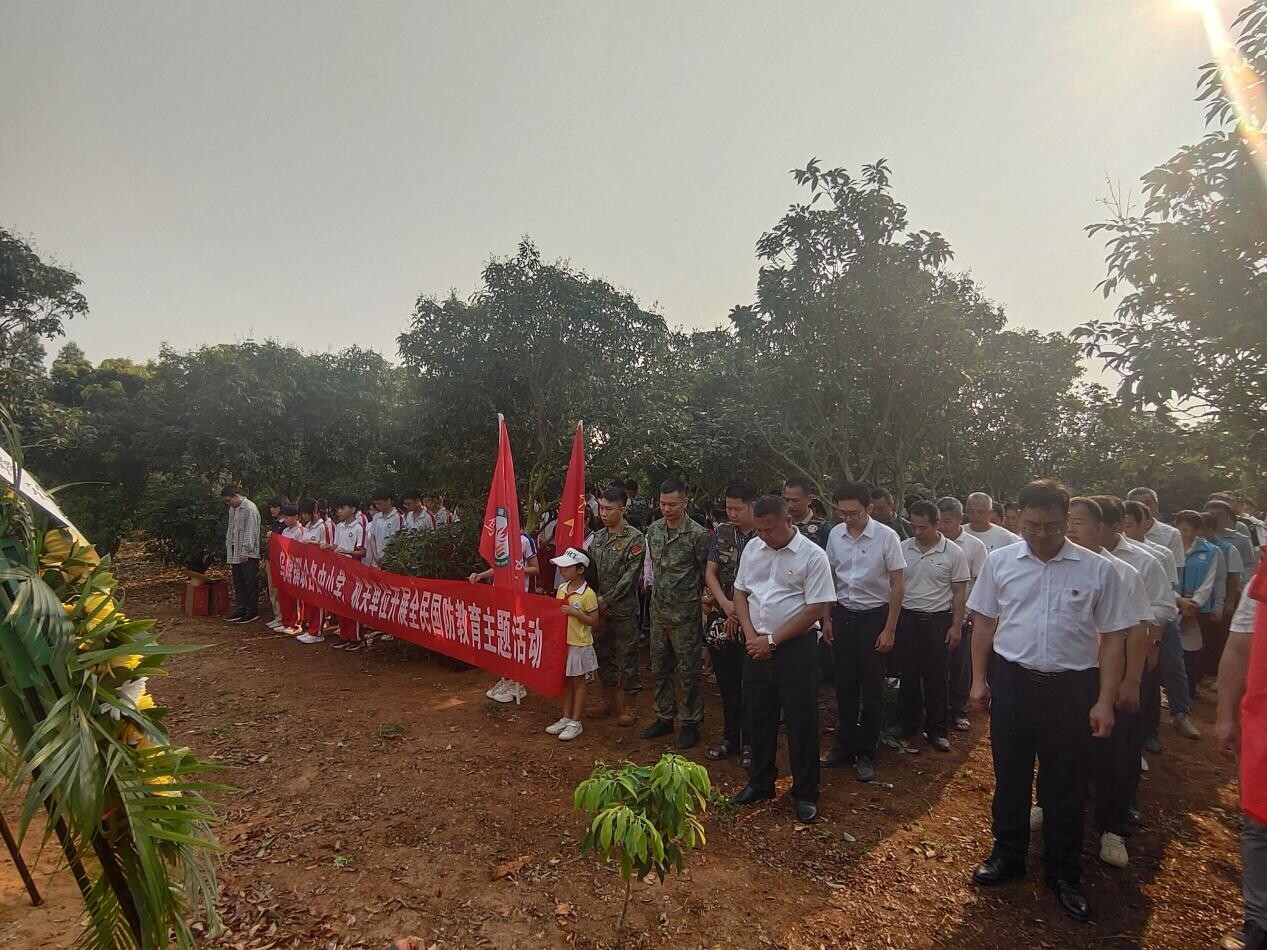 为弘扬英烈精神,传承红色基因,4月2日上午,乌塘镇人民政府、乌塘镇初级中学、乌塘镇中心小学、湛川片各村委联合到湛川荔枝公园开展以“缅怀革命先烈 传承红色基因 ”为主题的“清明祭英烈”国防教育实践活动。乌塘镇全体干部职工、湛川片全体党员干部以及乌塘初级中学、乌塘镇中心小学学生代表等210人参加活动。