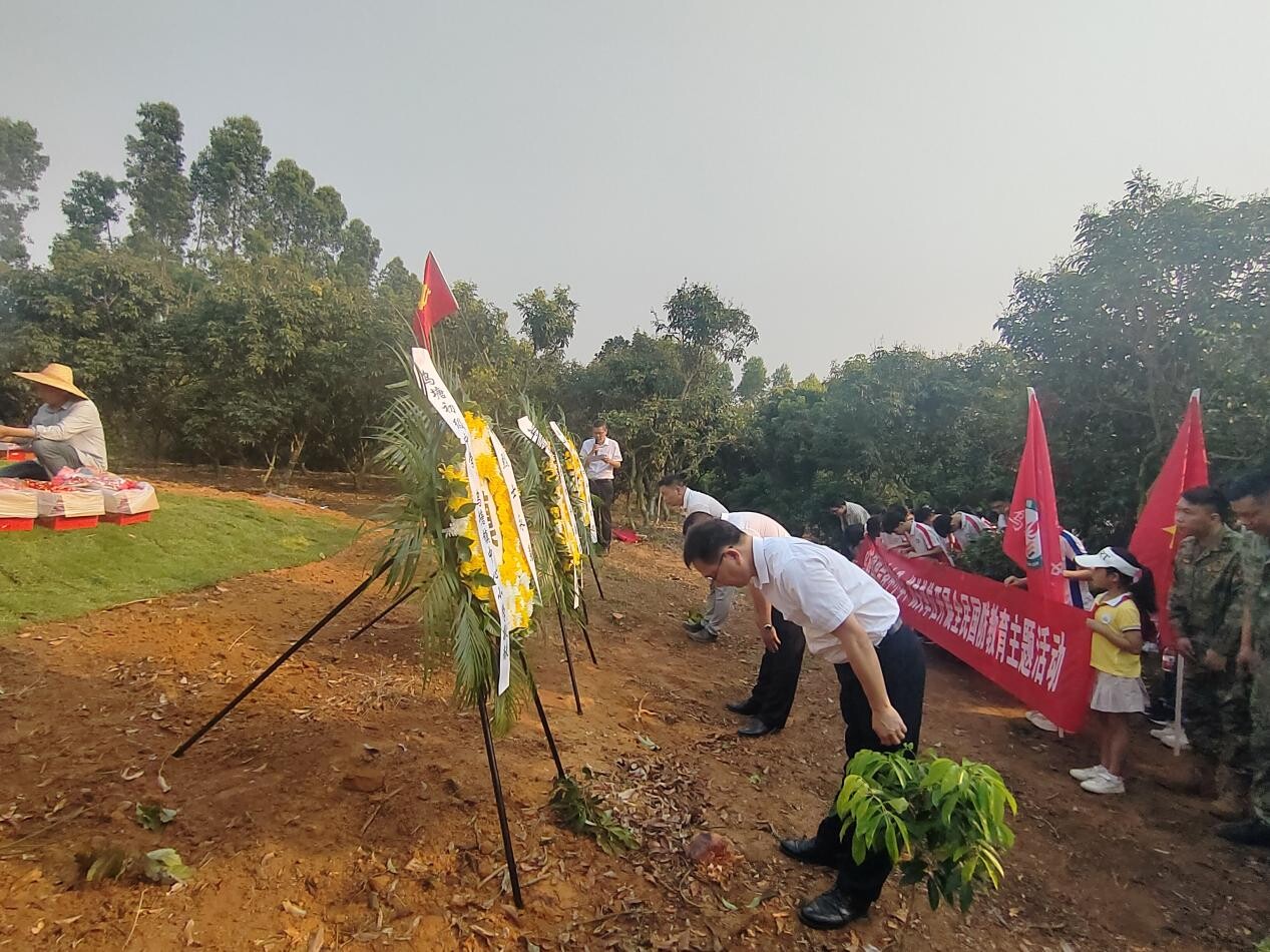乌塘镇党委副书记、镇长吴垂超、人大主席庞建华,湛川村支部书记黄民军上前整理花篮绶带,向烈士三鞠躬,表达我们最诚挚的敬意和感激之情。