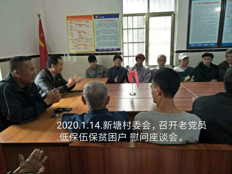 2020年1月14日上午,新塘村委会“两委干部”和十百千干部李伟明同志对60岁以上党员、低保户、五保户、大病患者进行春节慰问。