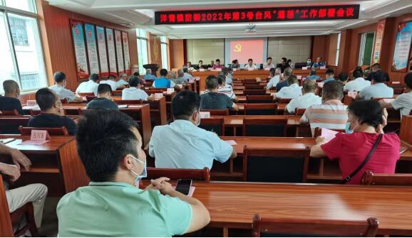 (7月2日晚上,县人大常委会党组书记、主任苏琛率挂点单位到洋青镇召开专题会议,指导防风工作)
