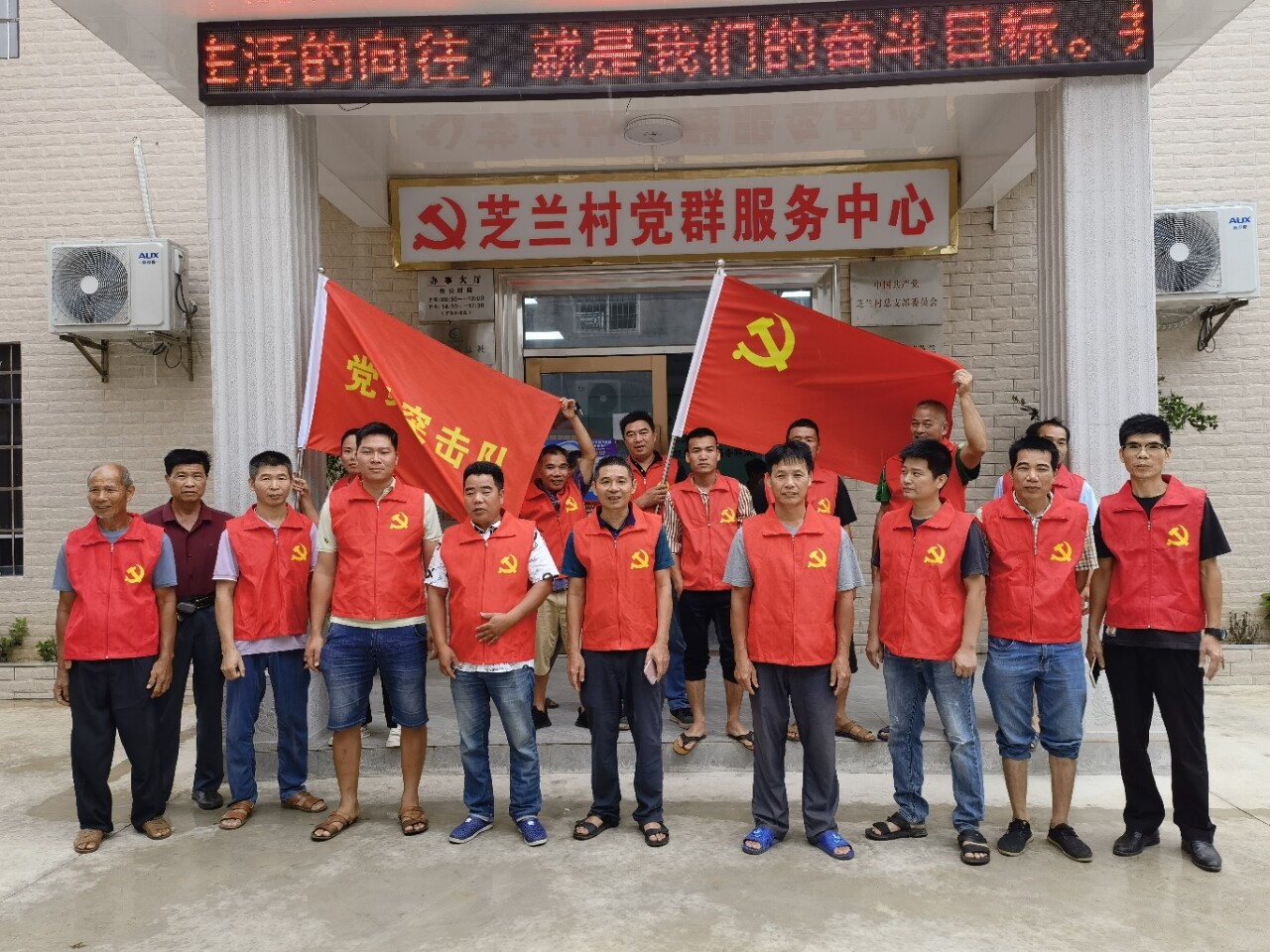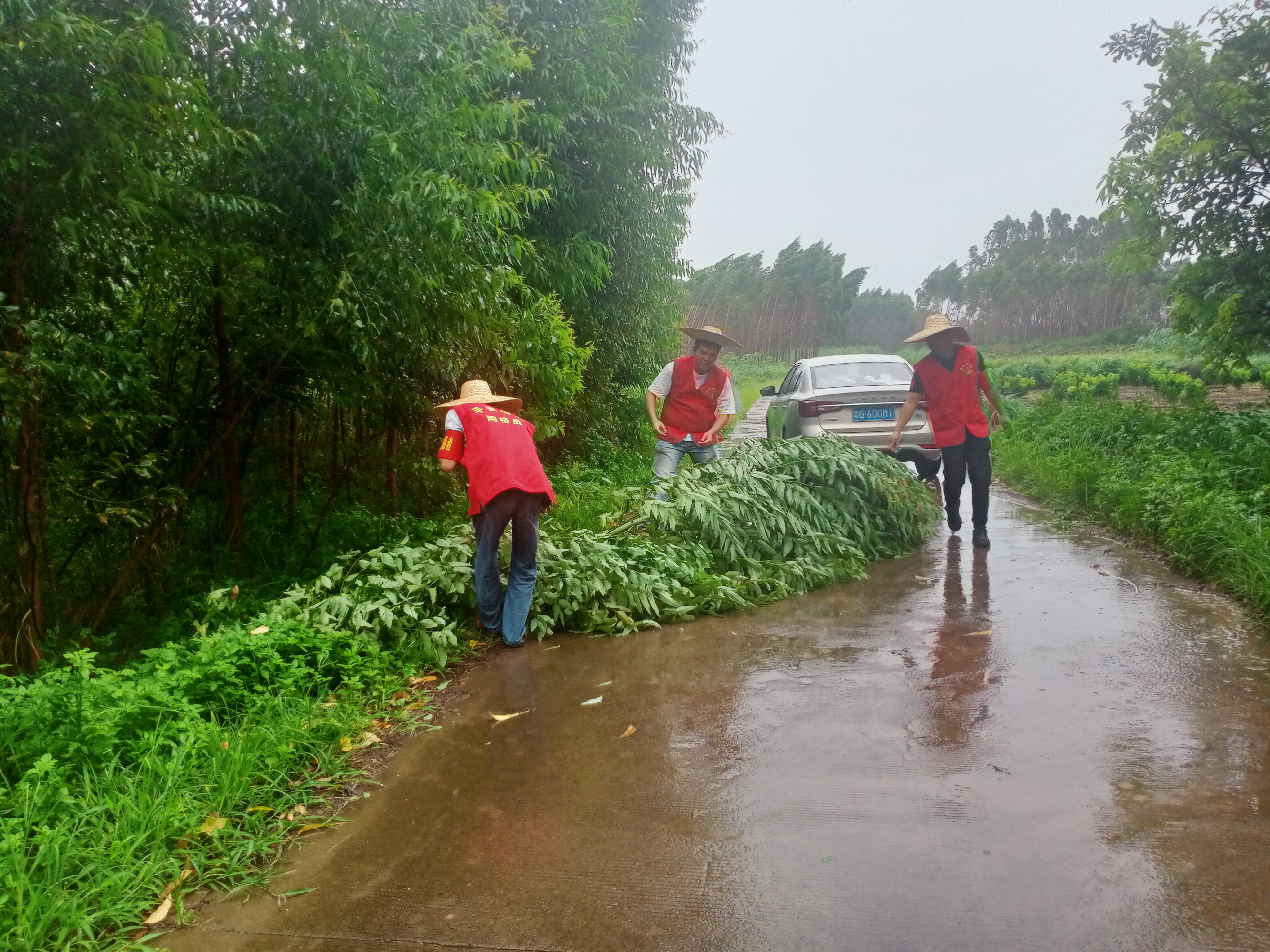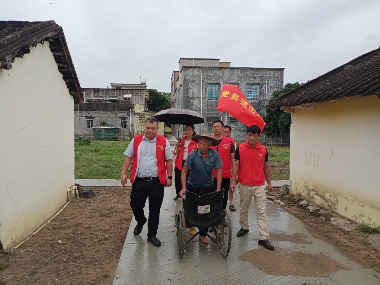 (党委委员梁利与蒲岭仔村党员突击队转移孤寡老人)