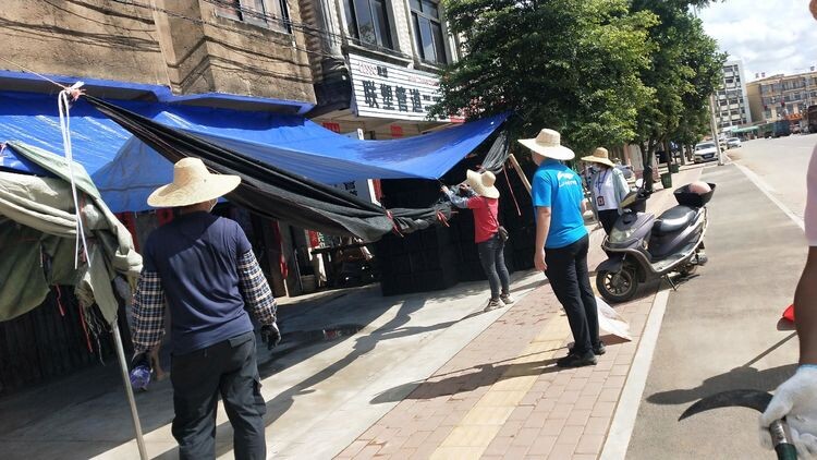7月11日,为以最佳状态和扎实成效迎接省创文检查组的考核,洋青镇组织全镇干部职工、驻镇帮镇扶村工作队、派出所等多个部门开展联合行动,对镇区、田头湾开发区等地开展系列综合整治。烈日下,骄阳似火,却丝毫抵挡不住他们高涨的工作热情。他们或拿着扫帚清扫路面的垃圾,或用小铁铲清理墙上的“牛皮癣”,或用镰刀取缔各种乱搭乱建,或动之以情、晓之以理劝导各类占道经营、乱摆乱卖行为,或是摆正路边乱停乱放的电动车……