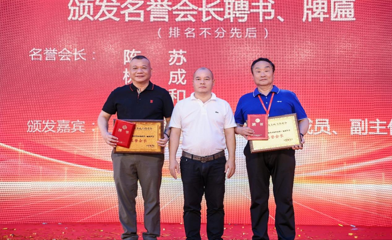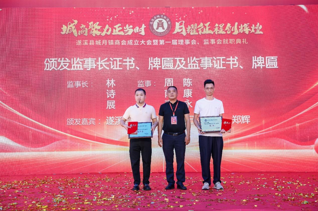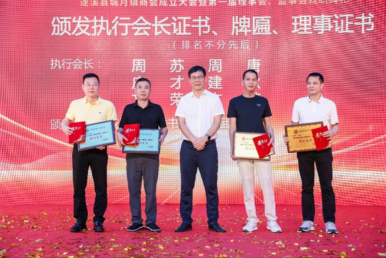 城月镇商会名誉会长陈树伟、苏成和颁发副会长证书、