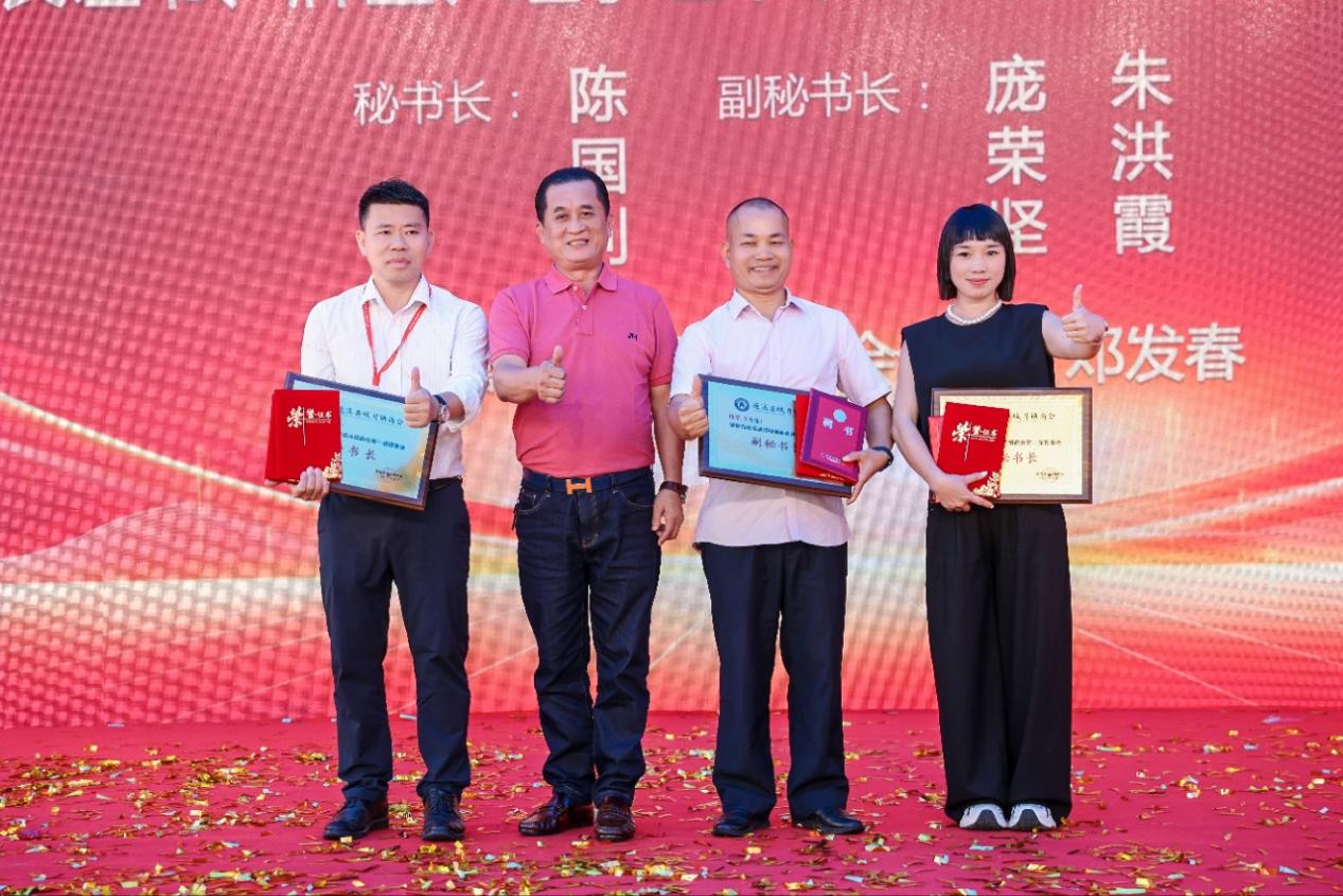 遂溪县人大常委会党组成员、副主任朱力颁发名誉会长聘书、名誉会长牌匾