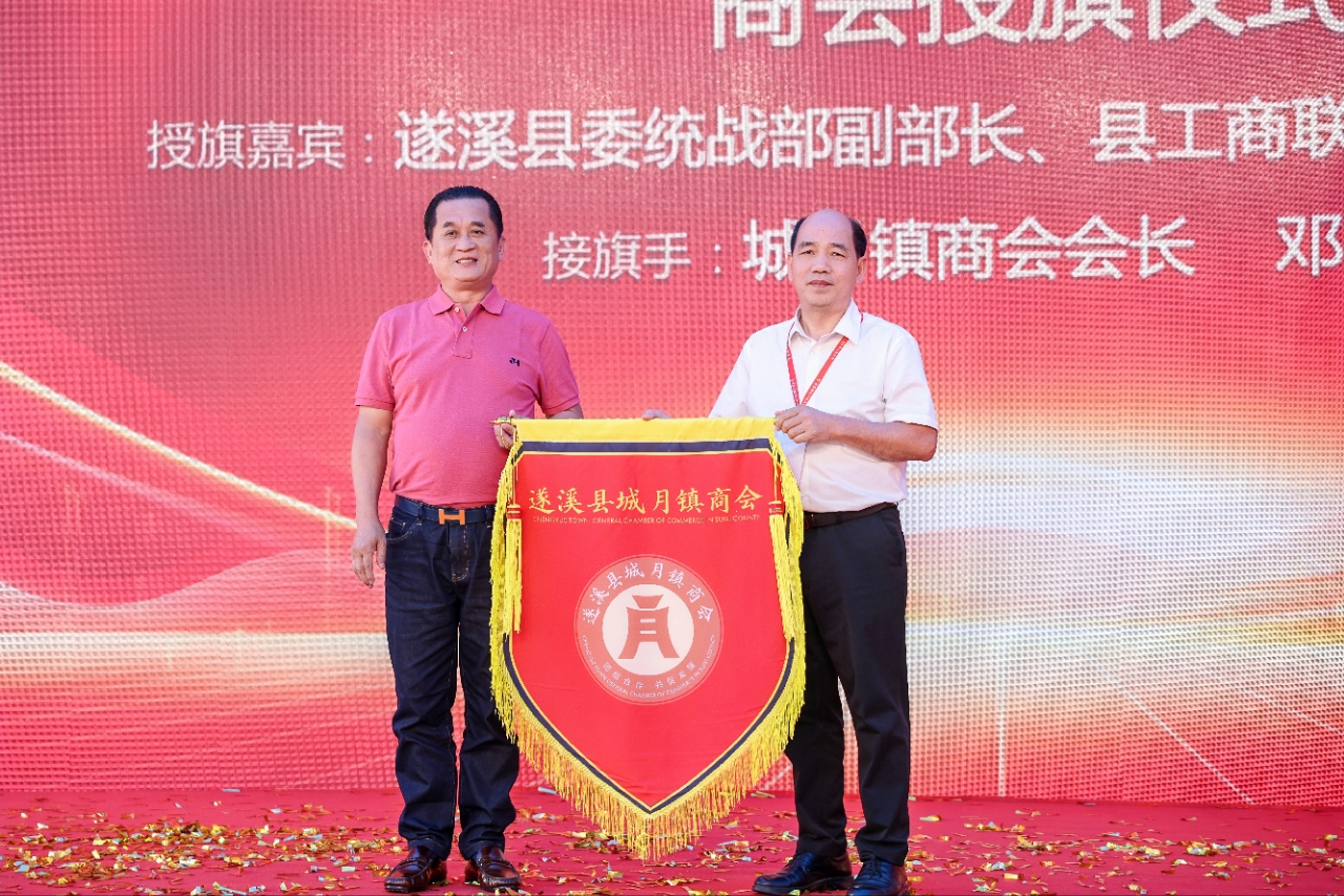 遂溪县委统战部副部长、县工商联党组书记李炳仁向城月镇商会会长邓发春授旗,象征商会正式肩负发展重任。邓发春会长在致辞中表示,接下来,将与理事会全体成员一道,始终以“服务会员、凝聚乡情、助力发展”为宗旨,搭建三大平台:一是政企沟通的“桥梁平台”,积极反映企业诉求,推动政策落地,为会员企业排忧解难;二是资源共享的“合作平台”,整合内外资源,促进多方抱团发展,助力企业做大做强;三是回馈桑梓的“责任平台”,引导会员企业投身乡村振兴、公益慈善,以实际行动践行社会责任。进一步严格遵守章程,创新服务机制,把商会打造成“会员信赖的家园、政府得力的助手、发展共赢的纽带”。