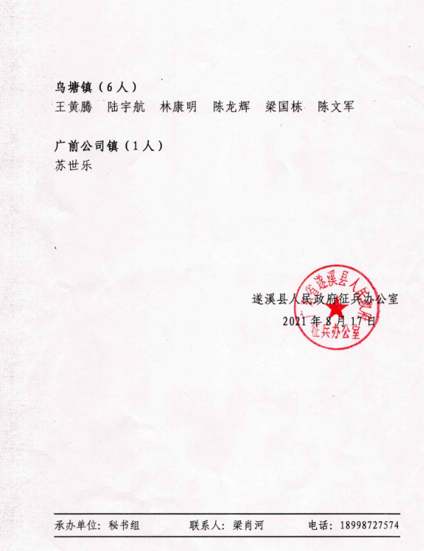 遂溪县2021年下半年征兵参加政治考核人员名单