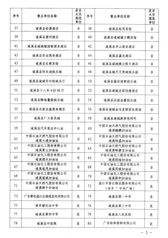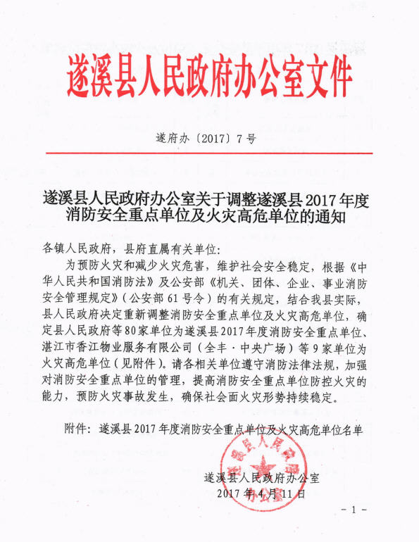 关于调整遂溪县2017年度消防安全重点单位及火灾高危单位的通知
