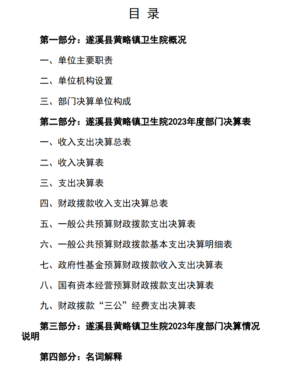2023年遂溪县黄略镇卫生院部门决算 | | 作者: | 来源:遂溪县卫生健康局 | 时间:2024-10-24 15:11:53 点击数:- 2023年遂溪县黄略镇卫生院部门决算.pdf 【打印正文】