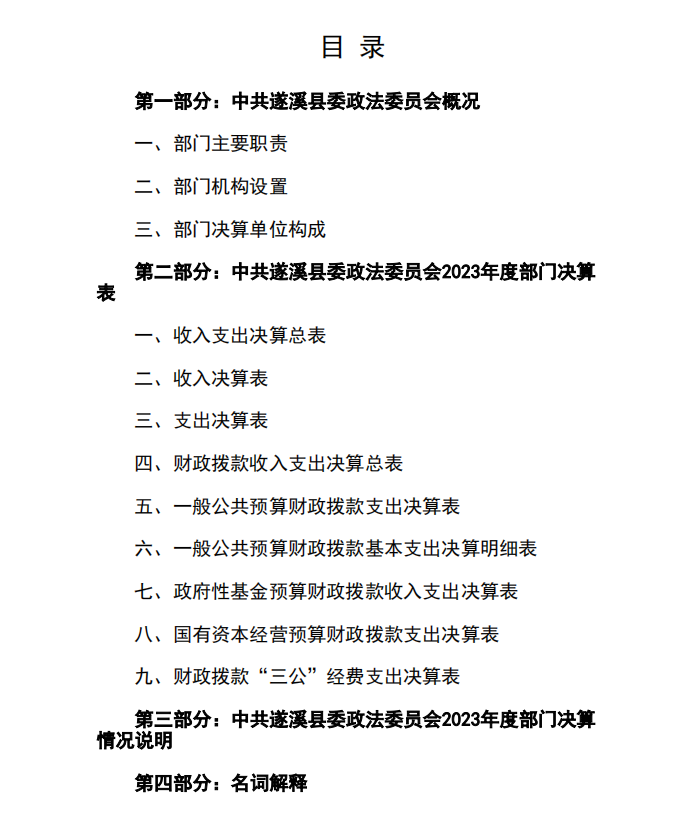 2023年中共遂溪县委政法委员会部门决算 | | 作者: | 来源:中共遂溪县委政法委员会 | 时间:2024-10-24 17:26:18 点击数:- 2023年中共遂溪县委政法委员会部门决算.pdf 【打印正文】