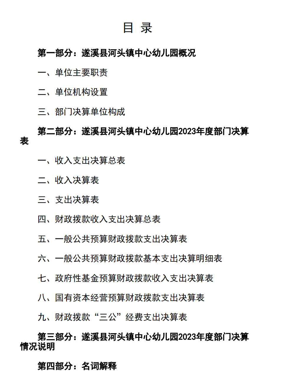 2023年遂溪县河头镇中心幼儿园部门决算 | | 作者: | 来源:遂溪县教育局 | 时间:2024-10-25 09:57:18 点击数:- 2023年遂溪县河头镇中心幼儿园部门决算.pdf 【打印正文】