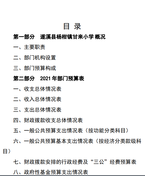 遂溪县杨柑镇甘来小学2021年部门预算 | | 作者: | 来源:本网 | 时间:2021-04-08 13:05:55 点击数:- 详情请见附件:2021年遂溪县杨柑镇甘来小学部门预算.pdf 【打印正文】