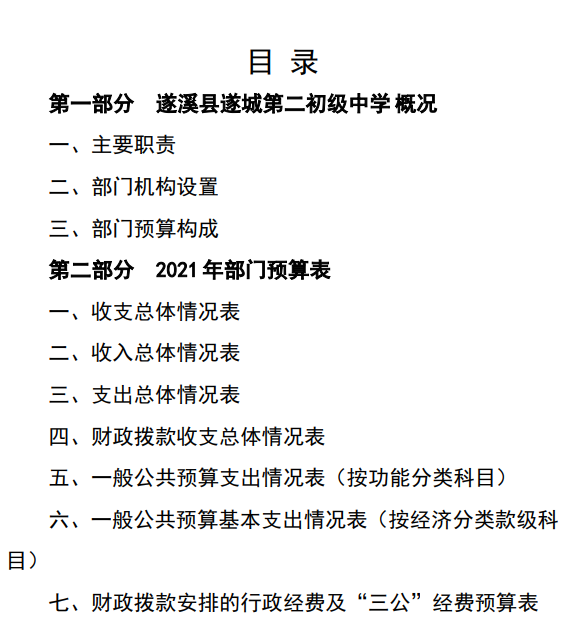 遂城第二初级中学2021年部门预算 | | 作者: | 来源:本网 | 时间:2021-04-08 14:04:35 点击数:- 详情请见附件:2021年遂溪县遂城第二初级中学部门预算.pdf 【打印正文】