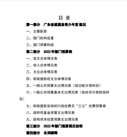 2022年广东省遂溪县青少年宫部门预算 | | 作者: | 来源:县财政局 | 时间:2022-05-05 15:33:17 点击数:- 详情请见附件:2022年广东省遂溪县青少年宫部门预算.pdf 【打印正文】