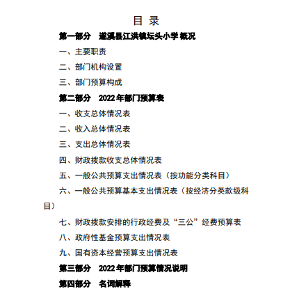 2022年遂溪县江洪镇坛头小学部门预算 | | 作者: | 来源:本网 | 时间:2022-05-05 15:09:24 点击数:- 详情请见附件:2022年遂溪县江洪镇坛头小学部门预算.pdf 【打印正文】